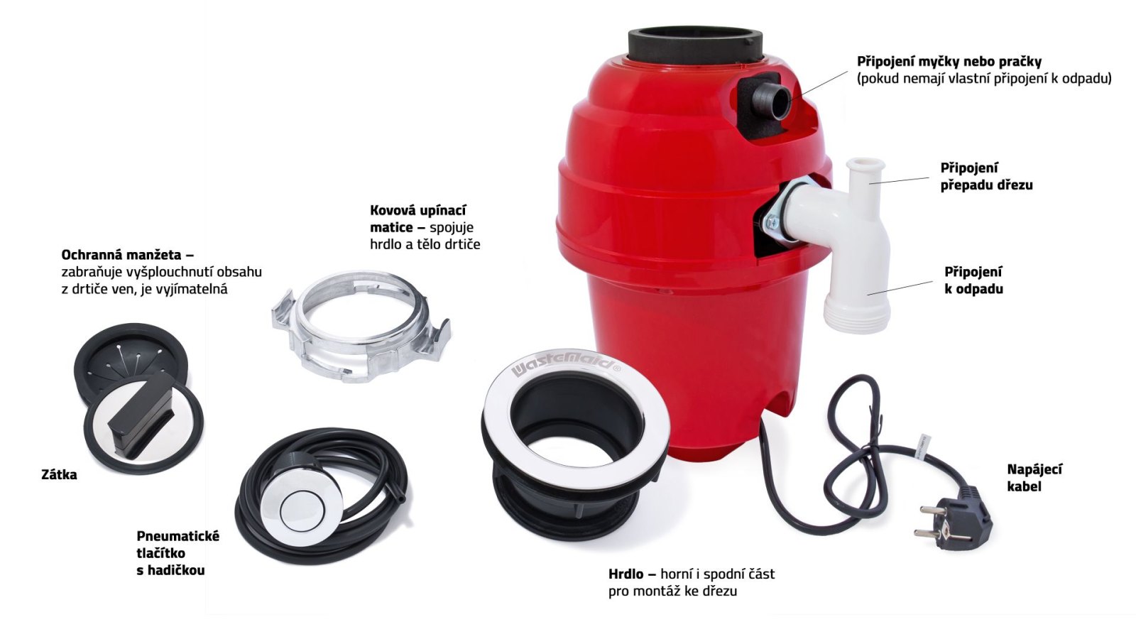- Zátka na drtič a ochranná manžeta jsou součástí.